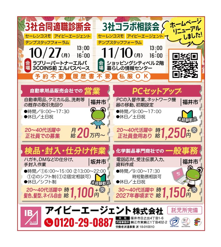 人気の派遣会社が3社コラボ!(セーレンコスモ、テンプスタッフフォーラム、アイビーエージェント)